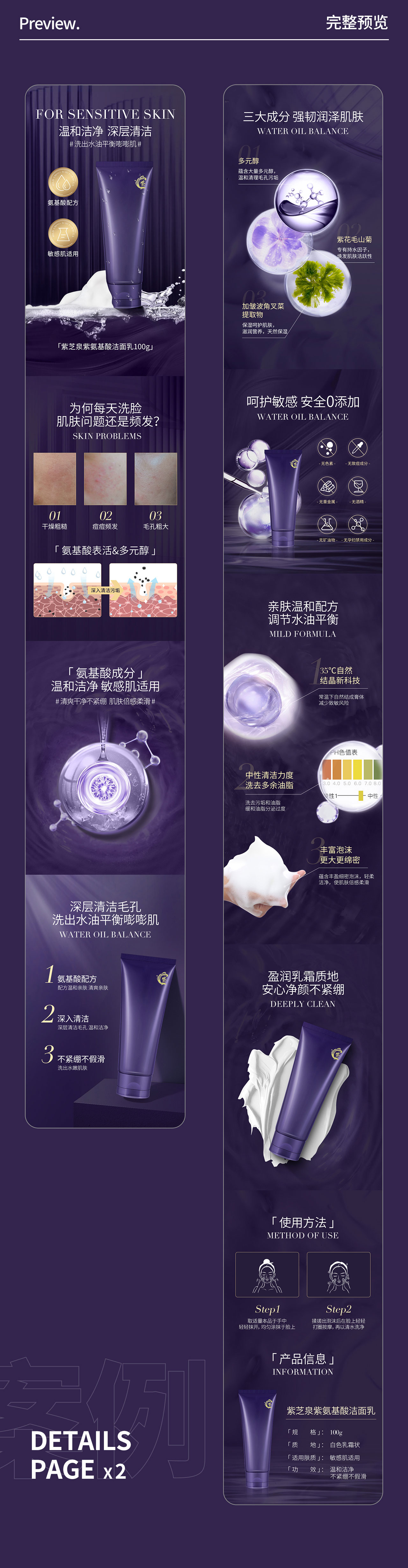 紫芝泉个人洗护用品洁面乳电商详情页