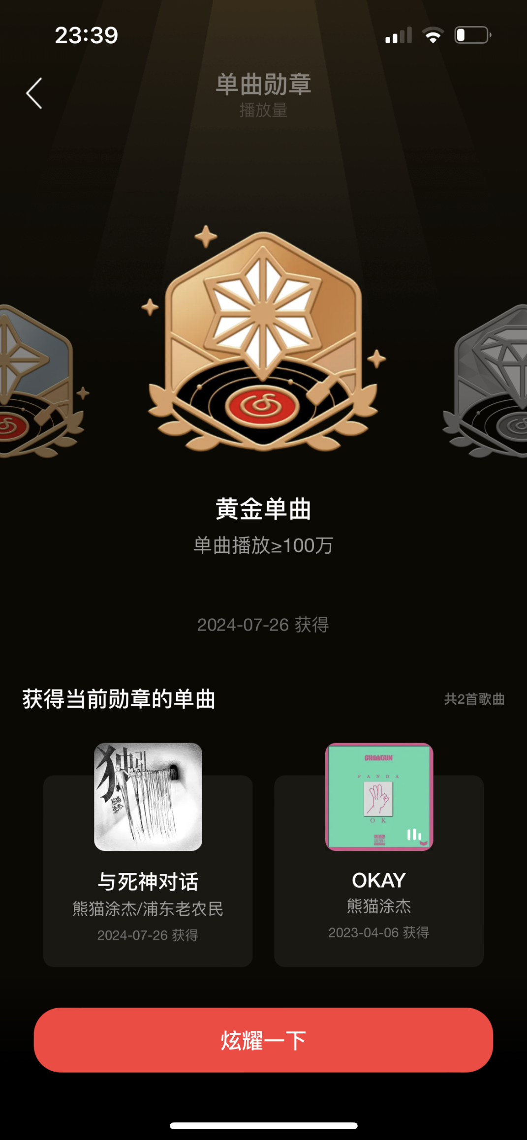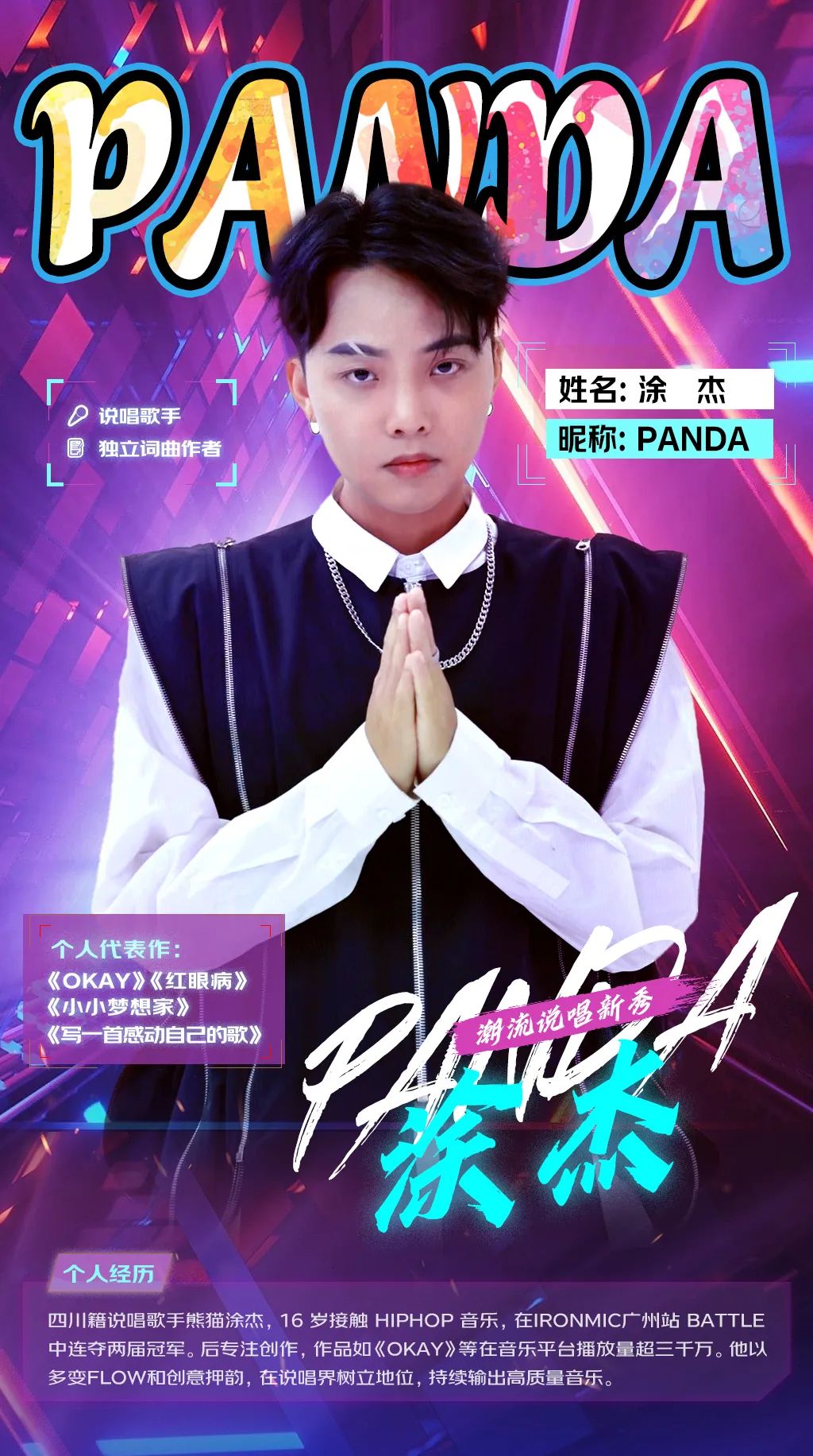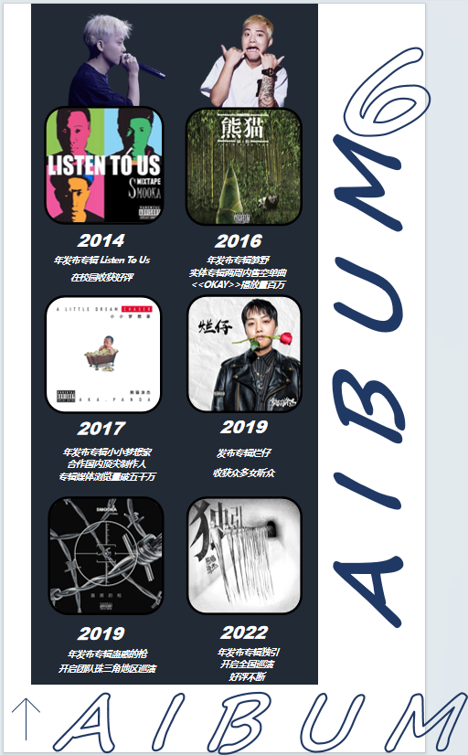 新歌《与死神对话》《OKEY》在网易云音乐平台播放量超百万,获得黄金单曲。也参加过上千场音乐节等商演活动。