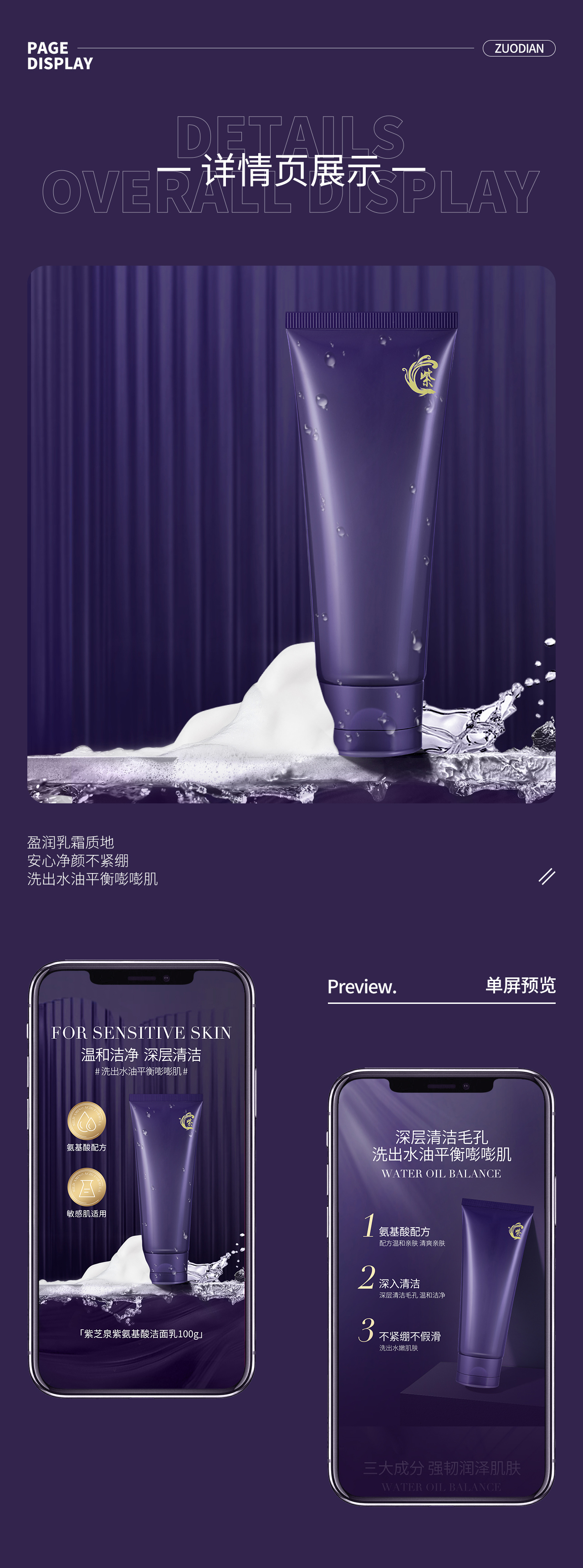 紫芝泉个人洗护用品洁面乳电商详情页